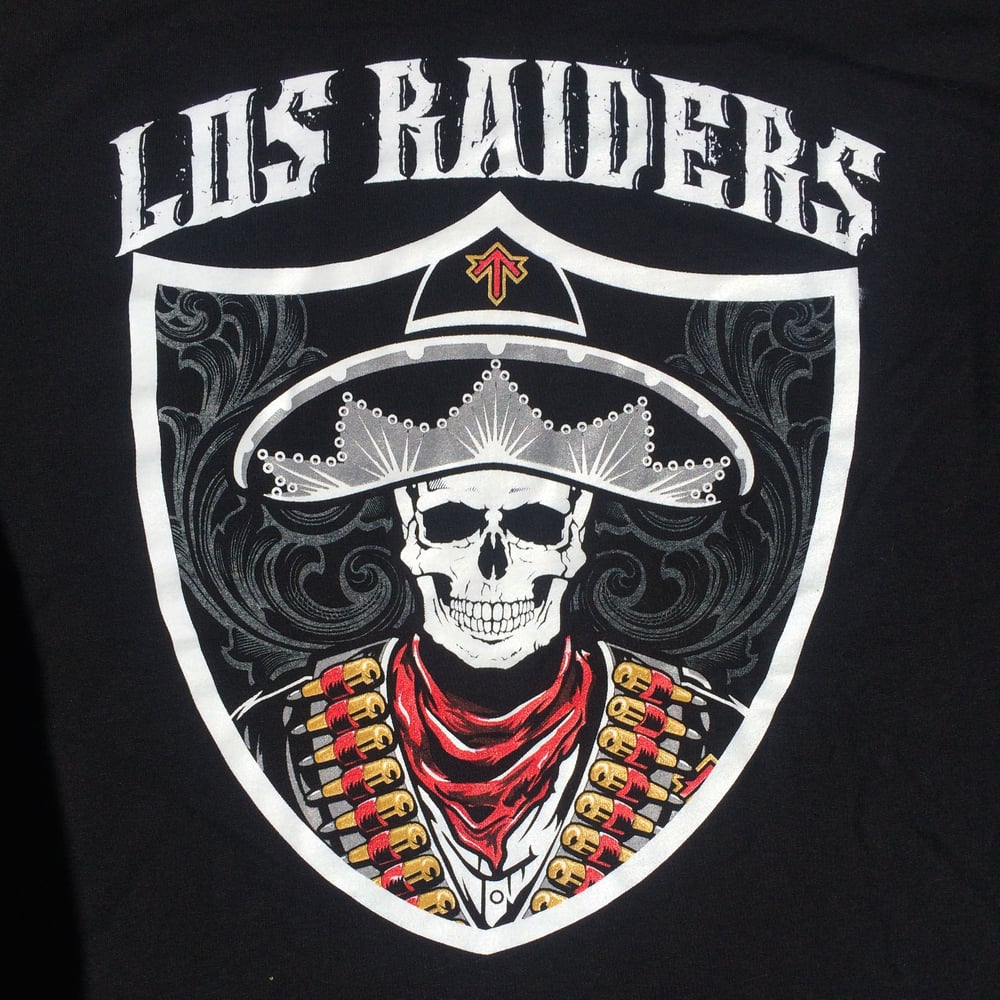 Are you ready for this year's game against the Texans down in Mexico this September? We are proud to introduce one of our newest designs, the Los Raiders. Printed on 50/50 cotton/polyester blends, these shirts help keep you cool and resist fading. Doesn't have any problems shrinking but you should always wash all you shirts in cold water and hang dry if possible. Heat is the enemy. Thank you for supporting small businesses and artists.
